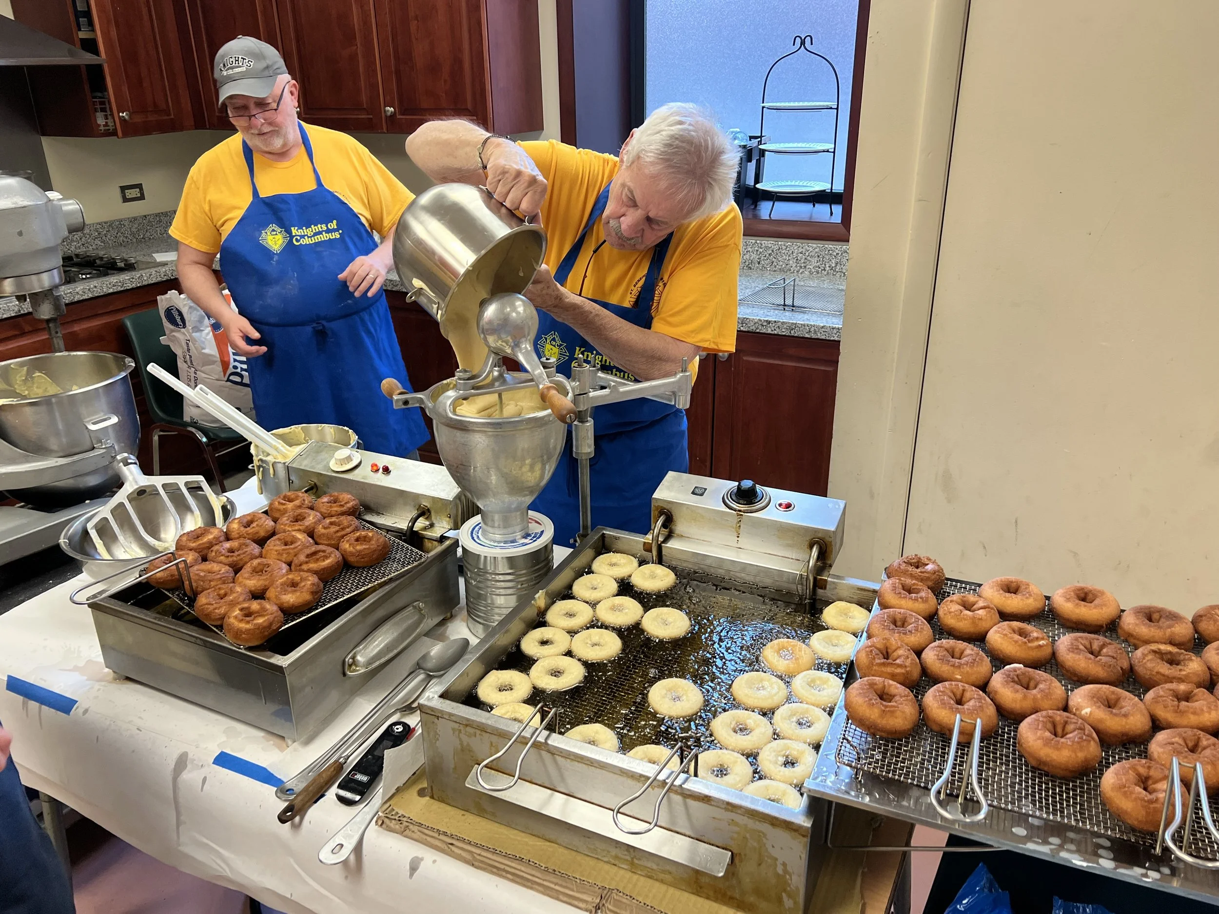 The Knights of Columbus get together to fry donuts — part fundraiser, part social hour. Because nothing builds community like fried dough and coffee!